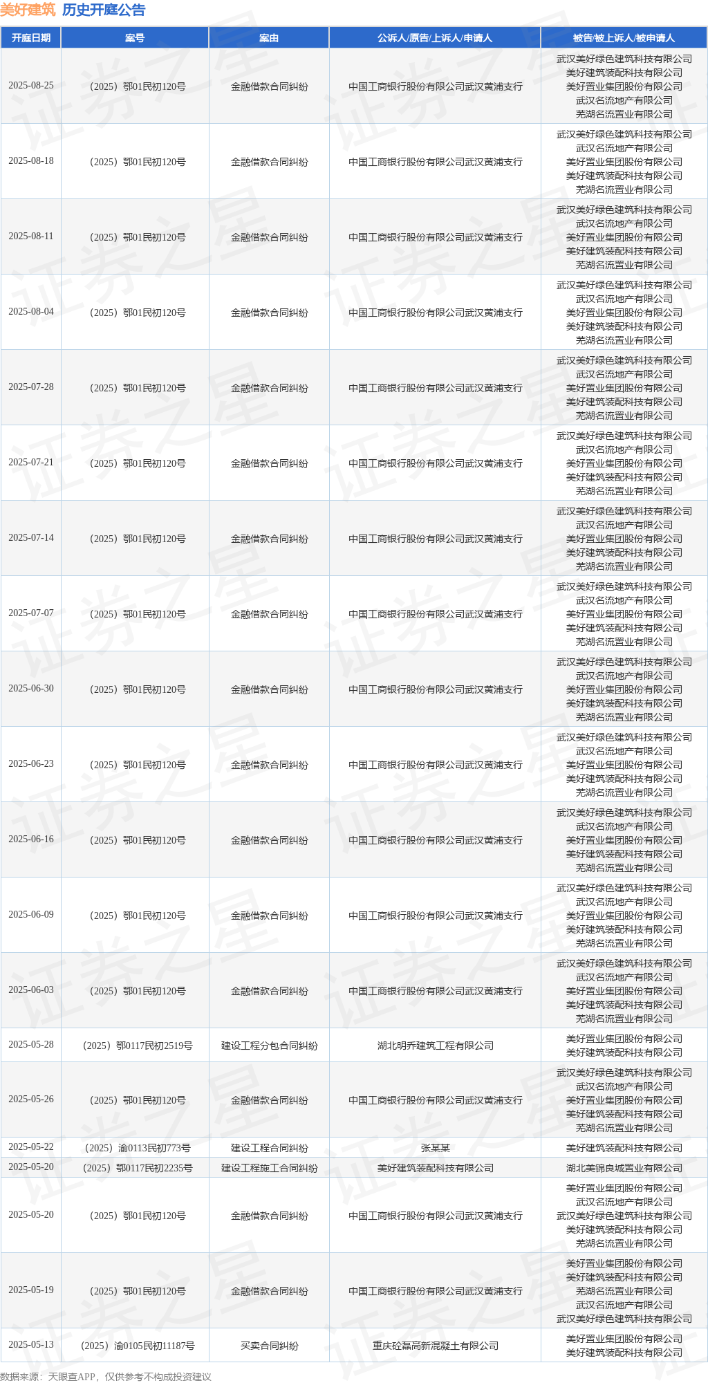 本站消息,根据天眼查APP显示,近日公布了一则美好建筑装配科技有限公司作为被告/被上诉人的开庭公告,详细内容如下: